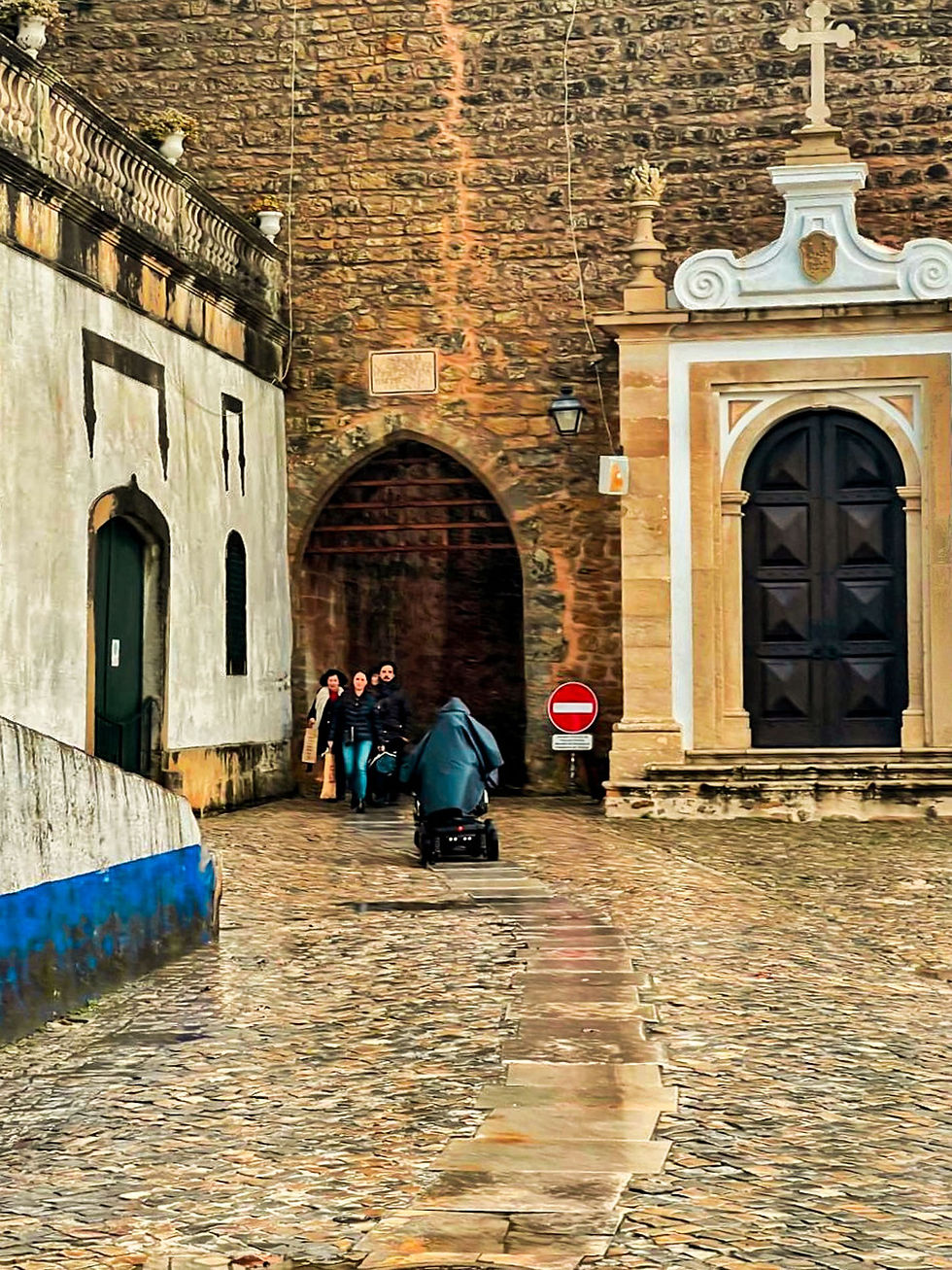 Capistrana localizada em uma igreja de Portugal que possibilita a circulação de cadeiras de rodas em local sem calçamento adequado. Foto: Anna de Grammont / Arquivo pessoal