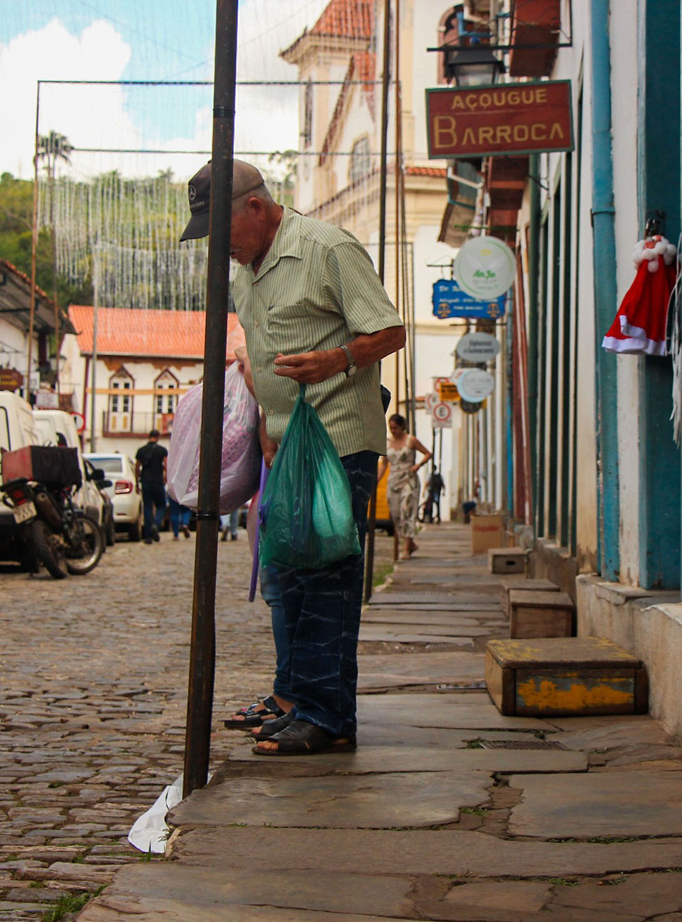 Entre calçadas estreitas e desníveis, idosos enfrentam dificuldades de circulação no Centro Histórico de Mariana. Foto: Larissa Antunes